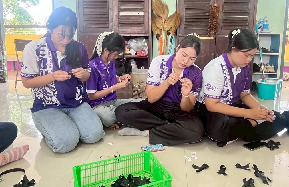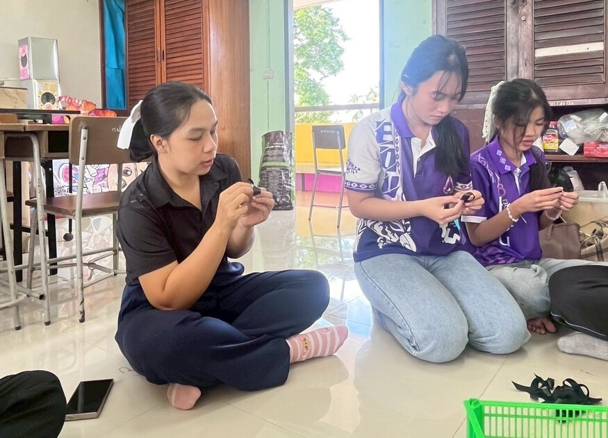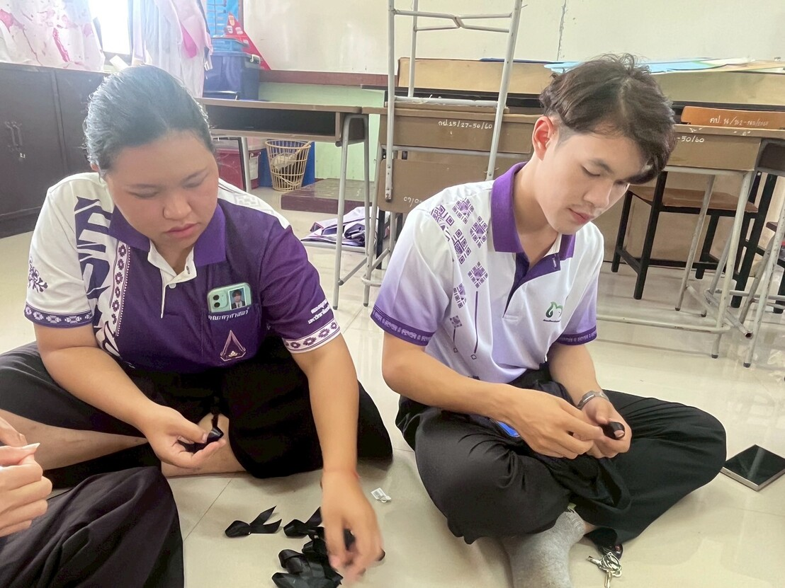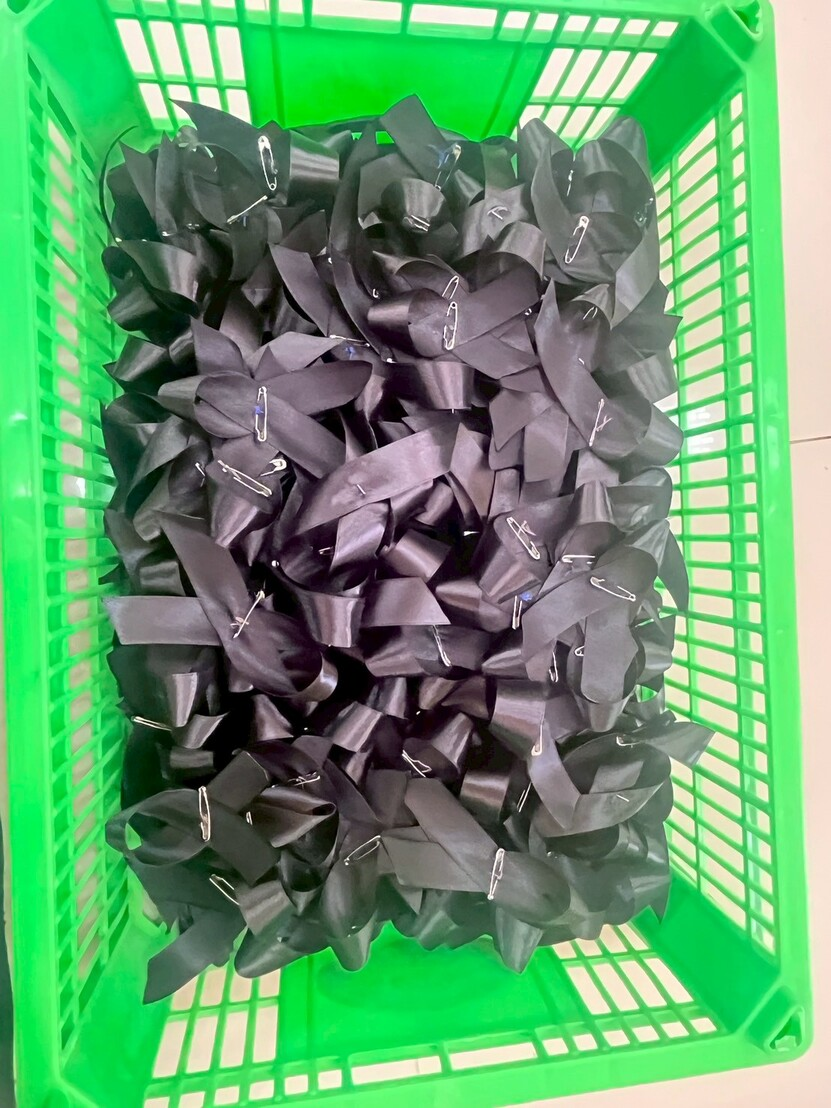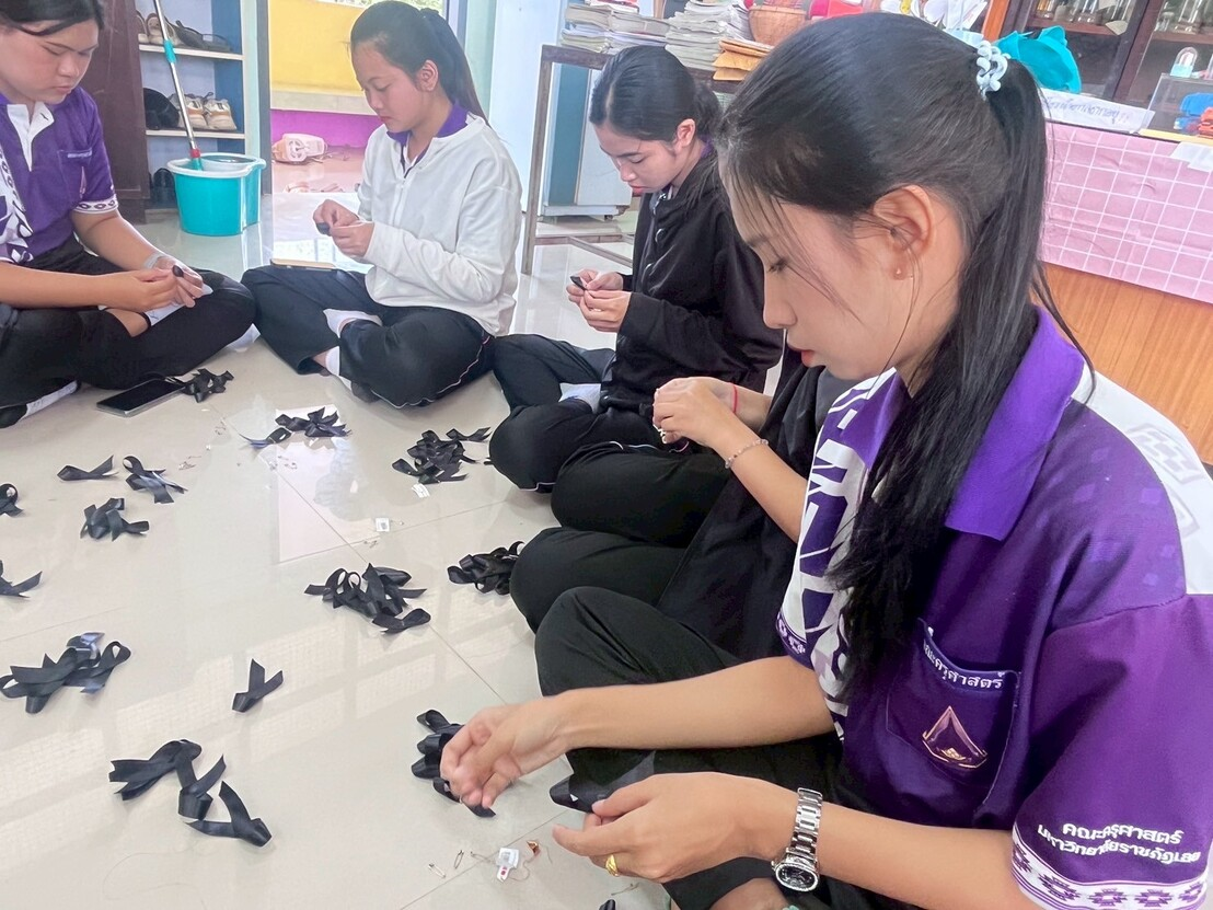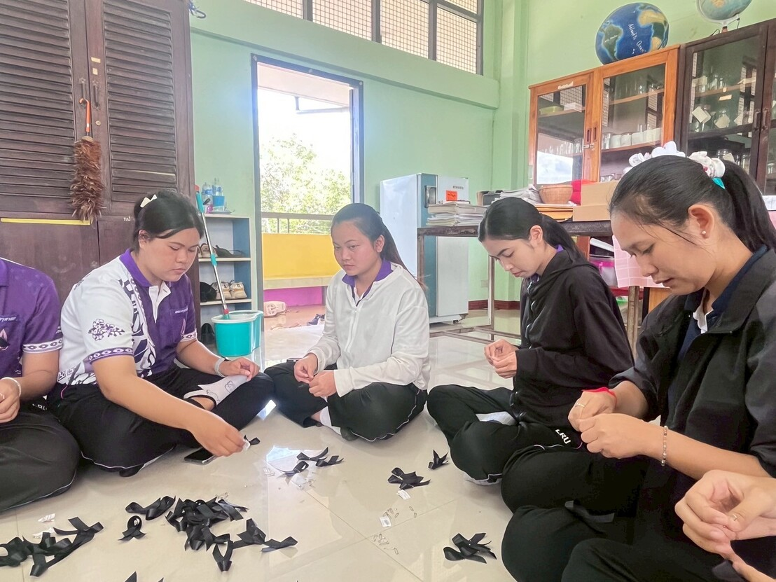 "29 ตุลาคม 2568 ครูและบุคลากร โรงเรียนบ้านก้างปลา ร่วมแรงร่วมใจจัดทำริ้บบิ้นสีดำไว้อาลัย"