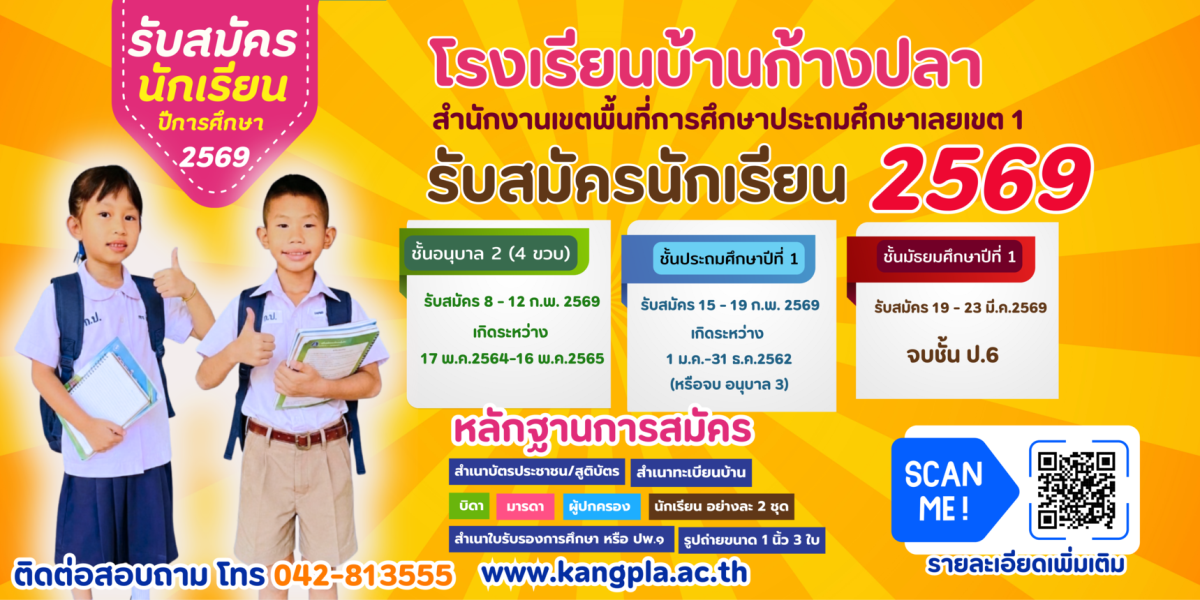 รับสมัคร 8 – 12 กุมภาพันธ์ 2569หลักฐานในการสมัครเข้าเรียน