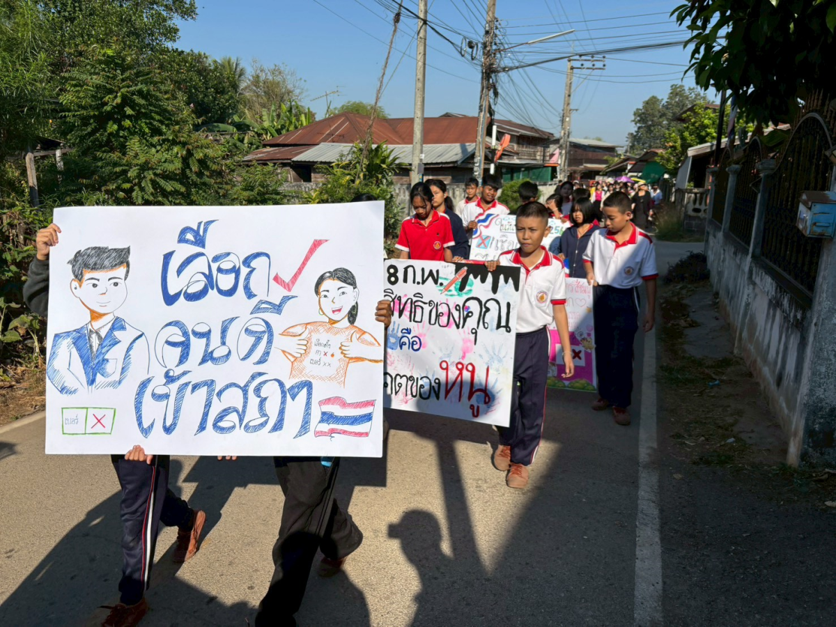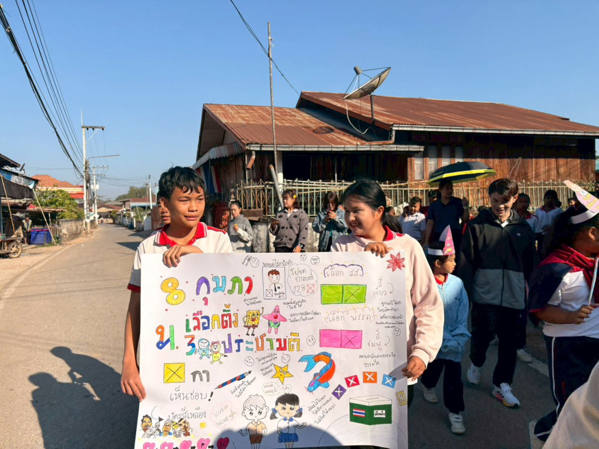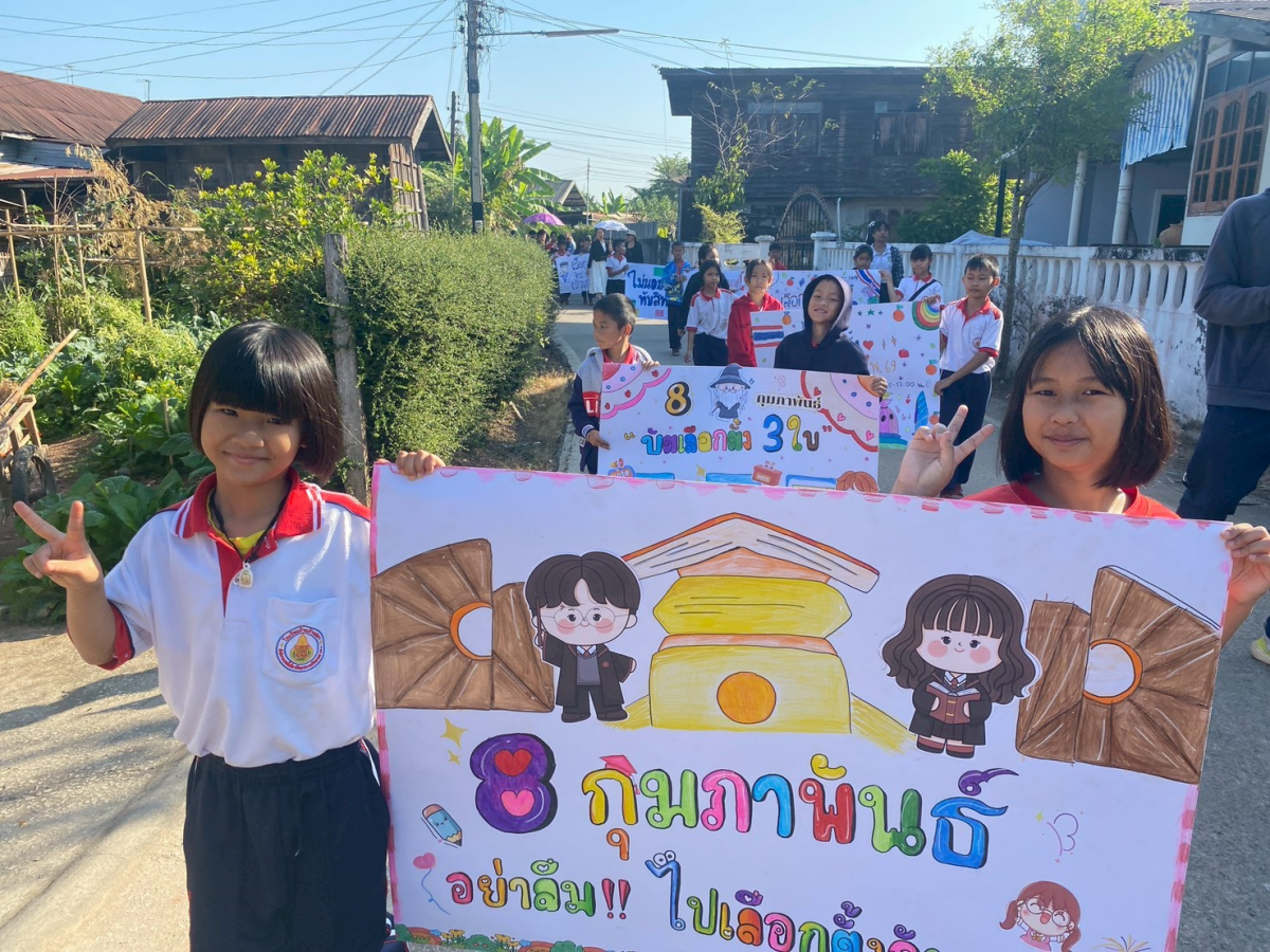 วันศุกร์ที่ 6 กุมภาพันธ์ 2569 นายพิทยากร สุนทองห้าว ผู้อำนวยการโรงเรียนบ้านก้างปลา ได้นำคณะครู บุคลากรทางการศึกษาและนักเรียนระดับชั้นประถมศึกษาปีที่ 1 ถึงระดับชั้นมัธยมศึกษาปีที่ 3 เดินรณรงค์ถือป้ายประชาสัมพันธ์ เพื่อเชิญชวนพี่น้องประชาชนในชุมชน หมู่บ้านก้างปลา ให้ออกมาใช้สิทธิเลือกตั้งสมาชิกสภาผู้แทนราษฎร (สส.) ซึ่งจะมีขึ้นในวันอาทิตย์ที่ 8 กุมภาพันธ์ 2569 นี้ กิจกรรมดังกล่าวจัดขึ้นเพื่อส่งเสริมและปลูกฝังจิตสำนึกด้านประชาธิปไตยให้แก่นักเรียน เปิดโอกาสให้นักเรียนได้เรียนรู้บทบาทหน้าที่ของพลเมืองจากการลงมือปฏิบัติจริง เล็งเห็นถึงความสำคัญของการมีส่วนร่วมทางการเมือง พร้อมทั้งส่งเสริมให้นักเรียนเติบโตเป็นพลเมืองที่มีคุณภาพ มีความรับผิดชอบต่อสังคม และยึดมั่นในระบอบประชาธิปไตยอันมีพระมหากษัตริย์ทรงเป็นประมุข